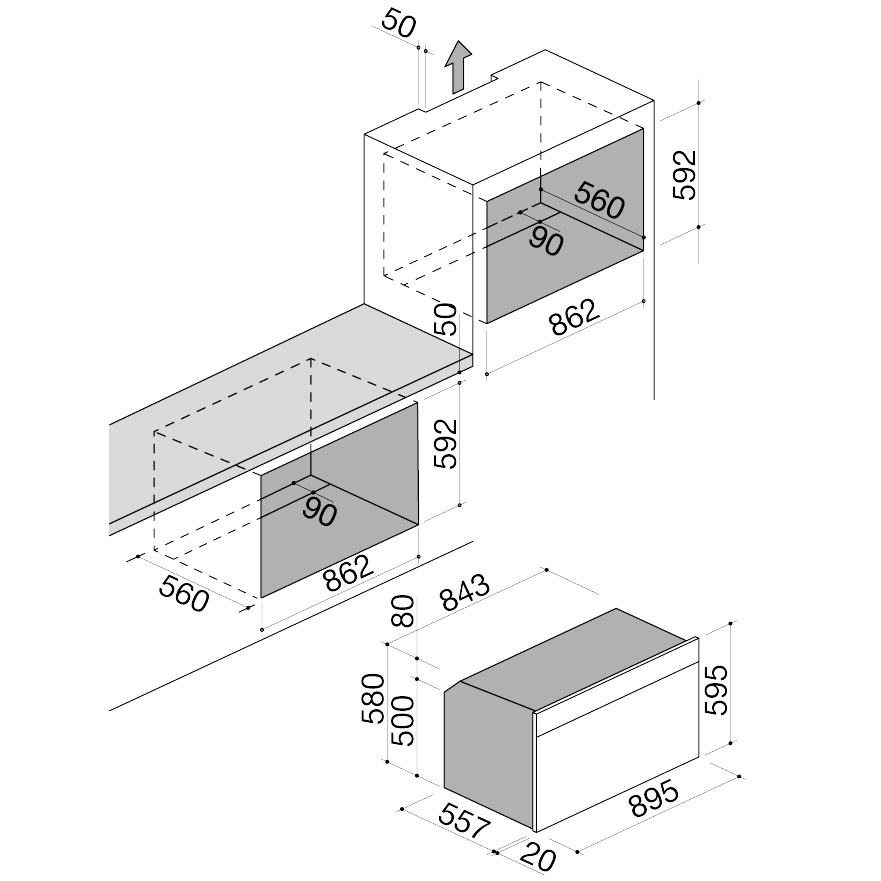 90 convection oven with Multiprogram digital programmer and knobs with characteristic Soft-Touch coating, easy and intuitive to use, complete with 8 manual functions, with a unique 120 litre capacity. The digital programmer controls and allows you to programme the cooking cycle with automatic on/off, also acting as a clock.