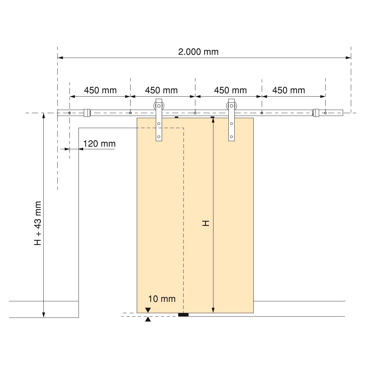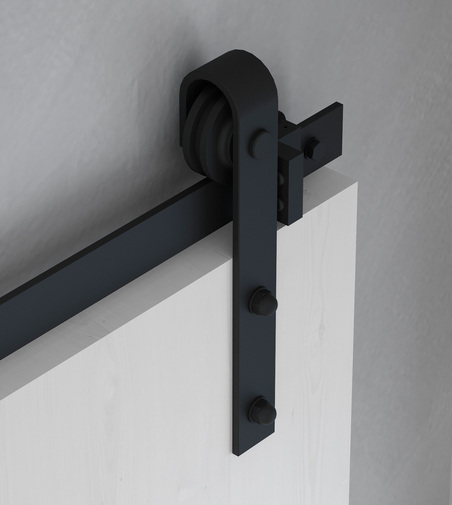 Sistemi përbëhet nga një shinë 2m, dy rrota për derë, pajisjet që bllokojnë daljen nga shina dhe vidat e montimit dhe fiksimit. Dërrasa nuk është e përfshirë.