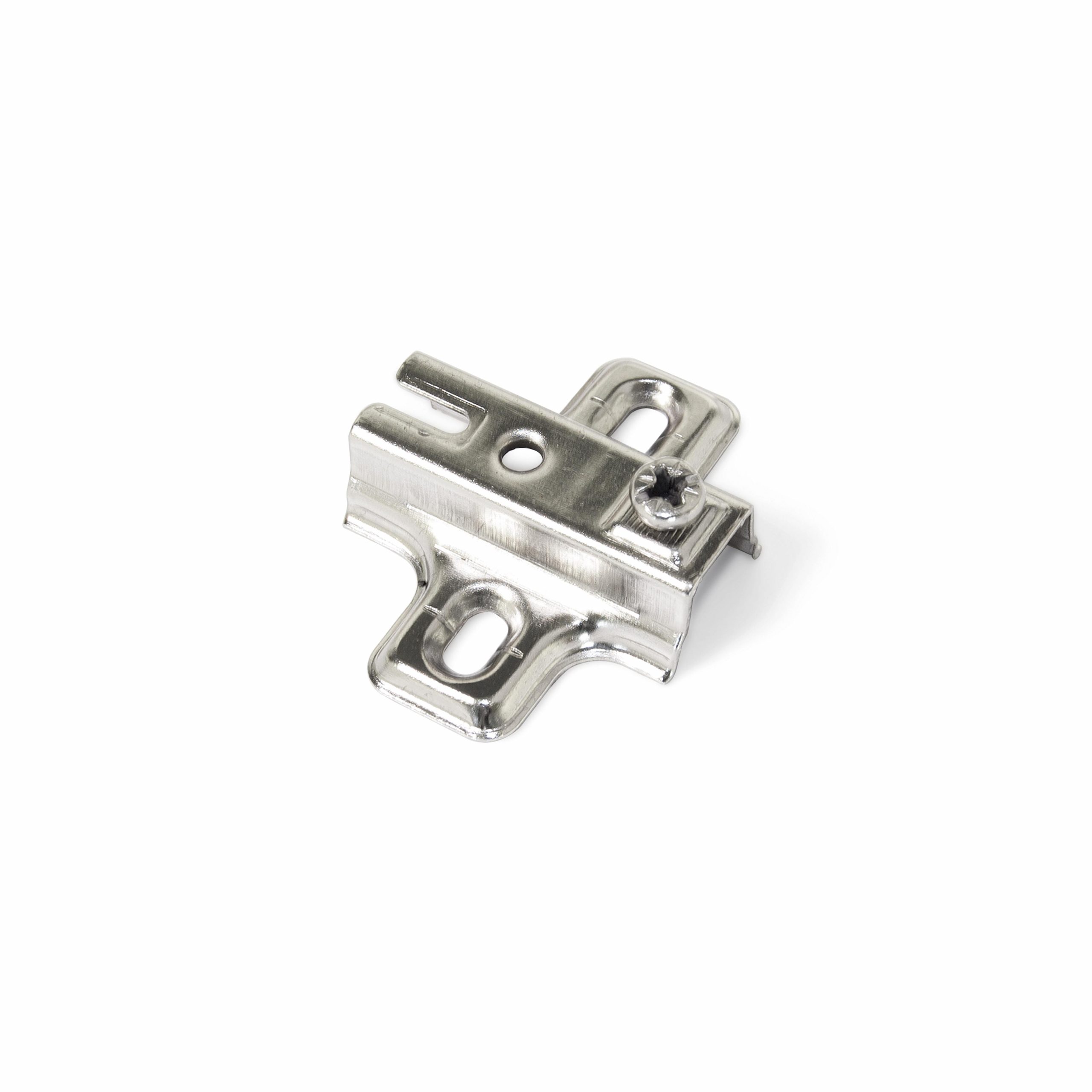 The supplement X95 screw-on -2 Nickel-plated, is a hinge support base, it is specifically designed to be used in the X95 series hinges. Its installation to the door panel is through screws that have a separation between screws 32mm and 37mm distance from the inner edge of the door. The material of its manufacture is ultra-resistant steel with an anticorrosion nickel-plated finish. The height adjustment of the supplement is by means of an adjustment screw allowing height measurements of -2. The packaging of the X95 screw-on inserts contains 200 units.