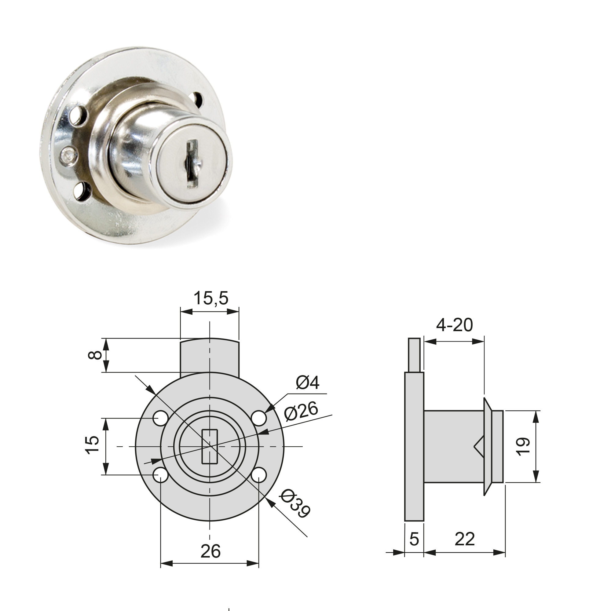 Sistem kyçje për sirtar. Ai siguron mbylljen e sigurt të sirtarit me mobiljet. Ka vida që shtypin fort sirtarin në mënyrë që të mos dalë. Ka dy çelësa për kyçje dhe secila kyçje hapet me çelësin e vet për të ofruar siguri më të madhe.