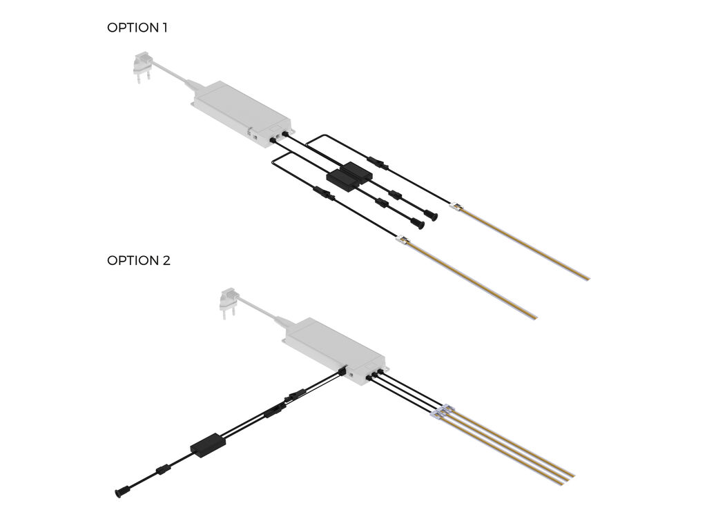 It includes a control port with an adapter cable to connect the SMART sensors, thus centralising the switching on and off of all the lights connected to the driver. By using the SMART sensors in the control port, we can override the admissible power limitation that these sensors have by default (36W Max at 12V DC or 72W Max at 24V DC), being able to connect all the power of the driver, thus controlling it with a single sensor. In addition, the Sensors can be used in any of the 6 ports or secondary outputs of the converter with Miniled connection, allowing independent installations with a single driver.