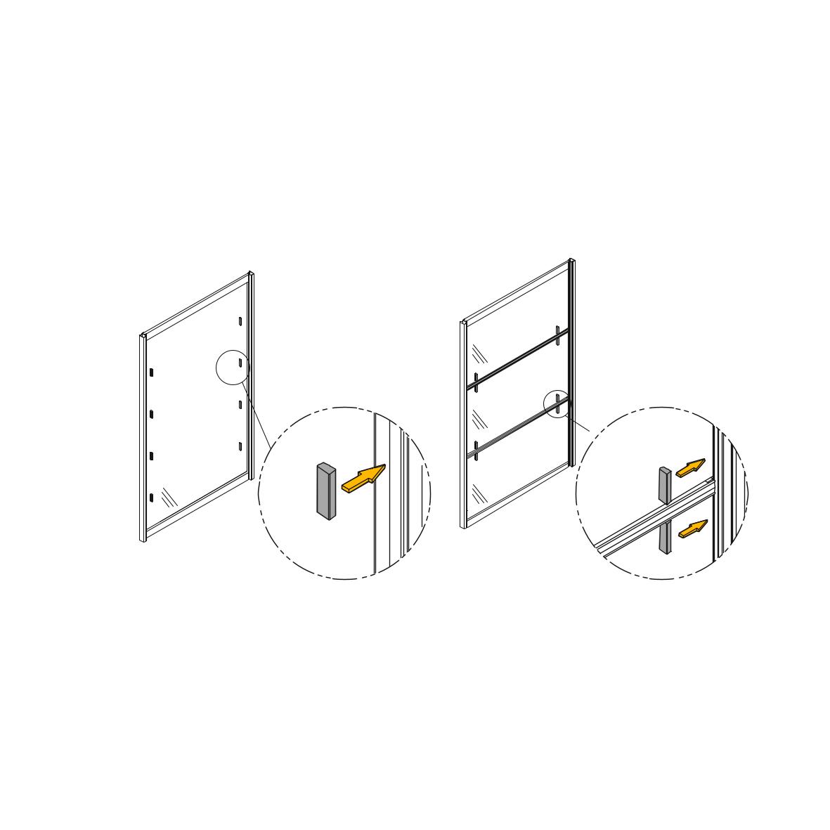 The Placard fittings are pieces that are placed between the profile and the glass panel to act as a stop and secure the panel so that it cannot move in the door. These are easily installed and are an essential product for this type of door. It is a piece that can be used for various types of profiles depending on the orientation that is installed. Its dimensions are 12mm deep and 6mm high and can be positioned for 4mm thick panels with 6mm and 12mm gaps As also in 10 mm thick panels with 6 mm of space, its packaging is one piece
