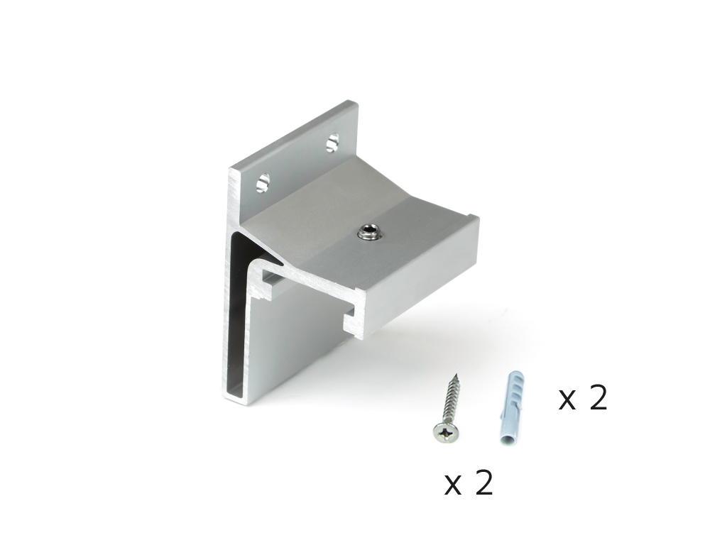 Anchor for wall mounting of the hanging sliding railway system. It is of optional use to attach the system to the top of the doorway. Its shape allows you to easily slide the lane and fix it by screws. This support has 43.3 mm wide and 66.3 mm high and is made of aluminum with a matte anodized finish, matching the lane. The anchor is installed by screwing Ramplug. In addition, it also allows easy assembly of the tapas system to improve the final aesthetic finish. The presentation of the packaging product is 5 units.