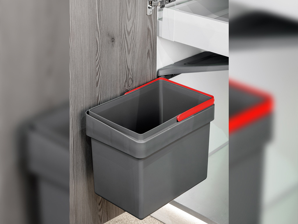Koshi mbetet i fshehur brenda mobiljeve ndërsa dera është e mbyllur, por kapaku hapet automatikisht kur hapet dera. Koshi mund të nxirret lehtësisht për tu pastruar.