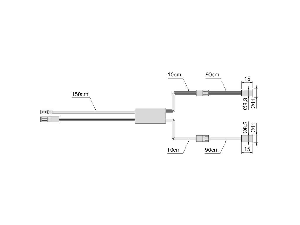 Its installation is very versatile, thanks to its small-sized heads that are embedded in the furniture with a diameter of 8mm. It is made of plastic with a black finish, and it comes with a 1.5m cable with Miniled connections and an additional 1m cable for each lens. It also features low power consumption and protection against electrical and electromagnetic interference, ensuring stable operation.