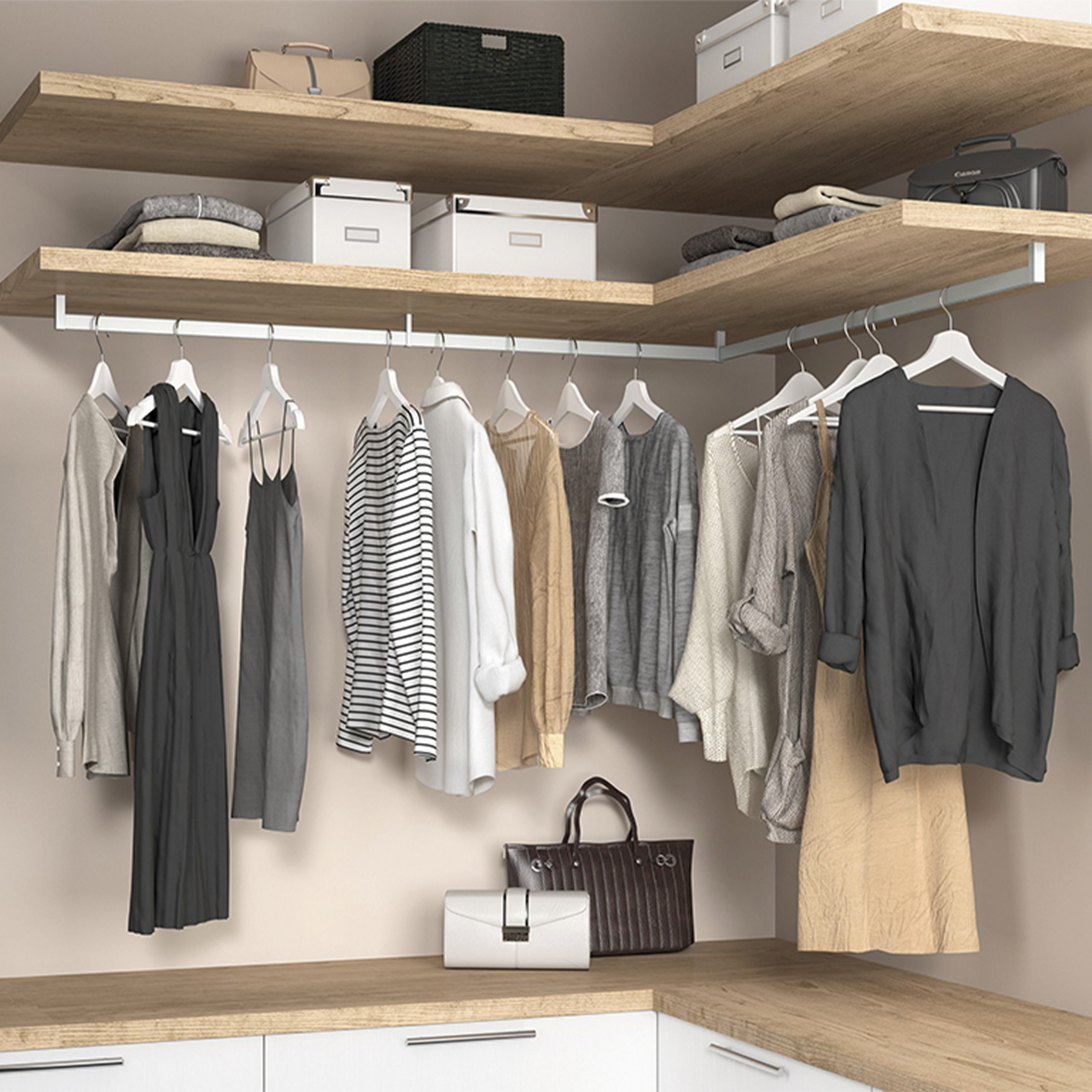 Aksesorët “Luxe”, janë të përshtatshme për varëset drejtkëndëshe “Luxe” të gardërobës. Montimi i vidave M6 bëhet në pjesën e sipërme. Në mënyrë që të llogaritet matja e varëses zbrit 10 mm nga matja e aksesorit. Vida M6 x 40 janë të përfshira për tu montuar në pjesën e sipërme. Seti është i përbërë nga dy krahë për bërë lidhjen e varëses.