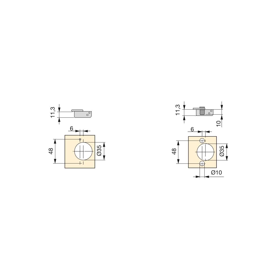 • Distance to cup bore edge d = 3 ~ 7 mm.