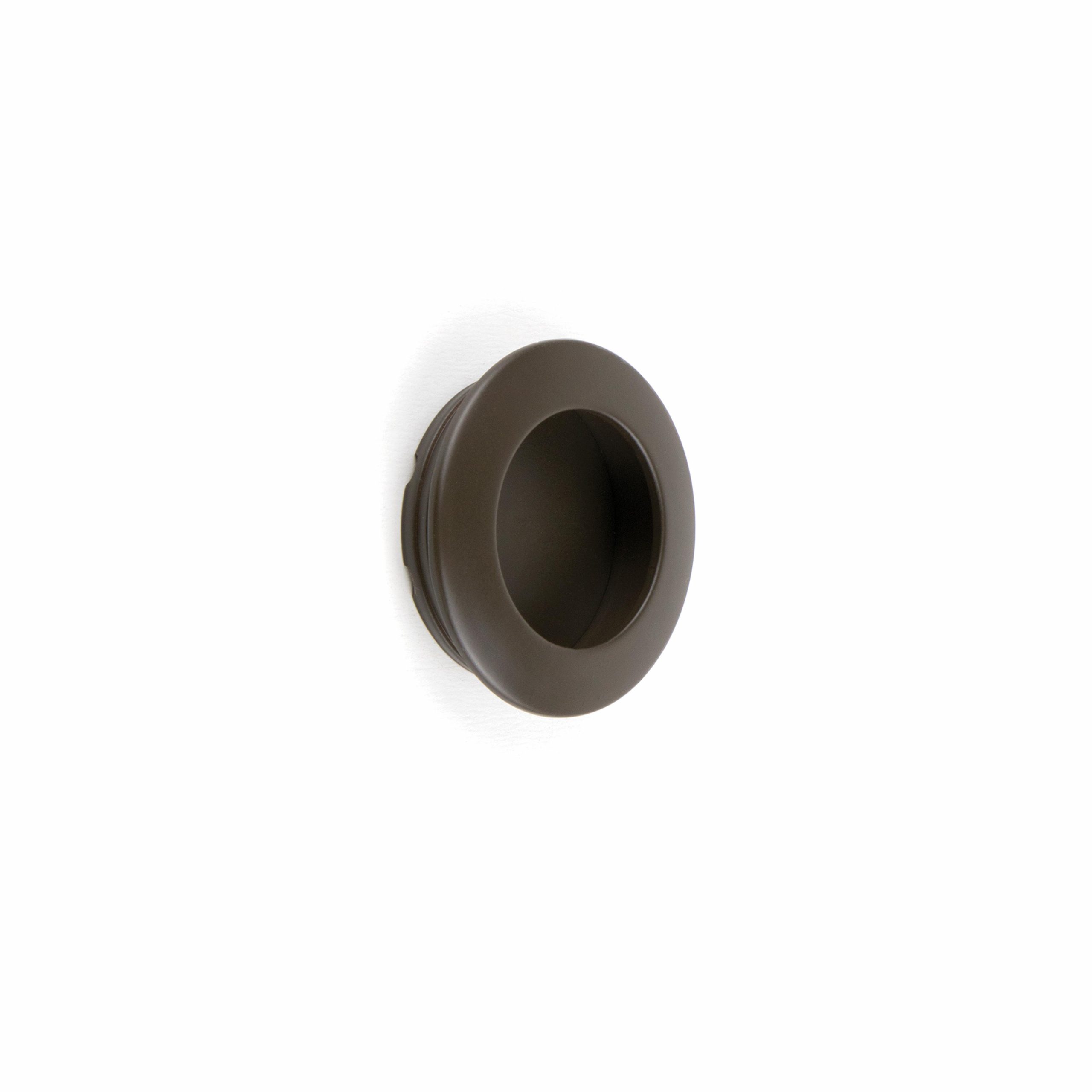 The Oregon knob for furniture is made from zamak with a satin nickel or mocha painted finish. It has a modern and contemporary design for embedding into the furniture, thumb notch type.