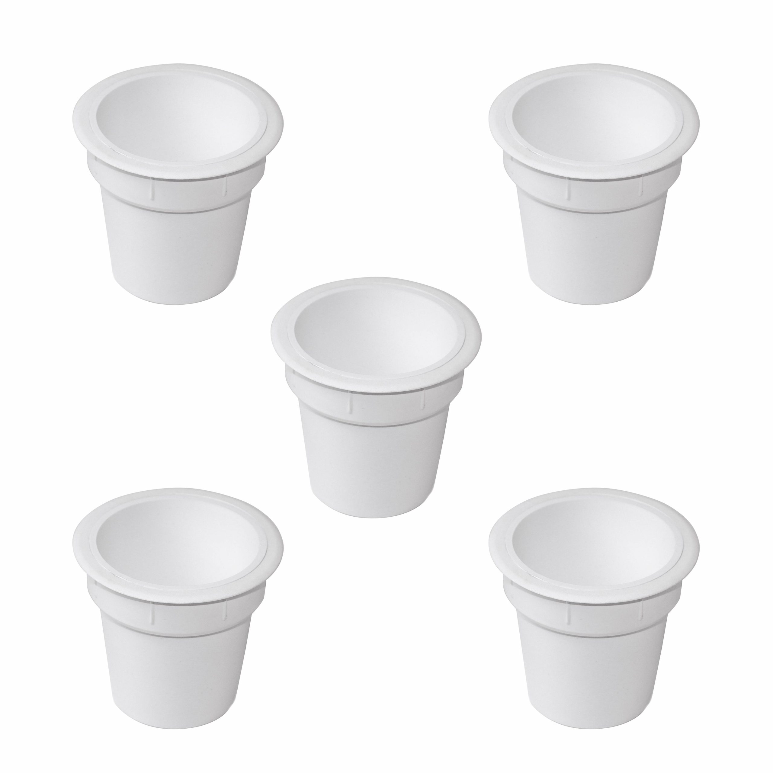 Pot is a very versatile accessory, it can be used as a pencil holder, slide, or even as a flowerpot. It is made up of a 91 mm diameter ring, which will be recessed, and a kind of 80.2 mm diameter bucket by 80.6 m high. This bucket can be easily removed for handling and cleaning. To install the Pot Accessory, 80.2 mm diameter machining is required to embed the piece in the cabinet. It is made of plastic and you can get it in a black or white finish. The product packaging is in a batch of 5 accessories.