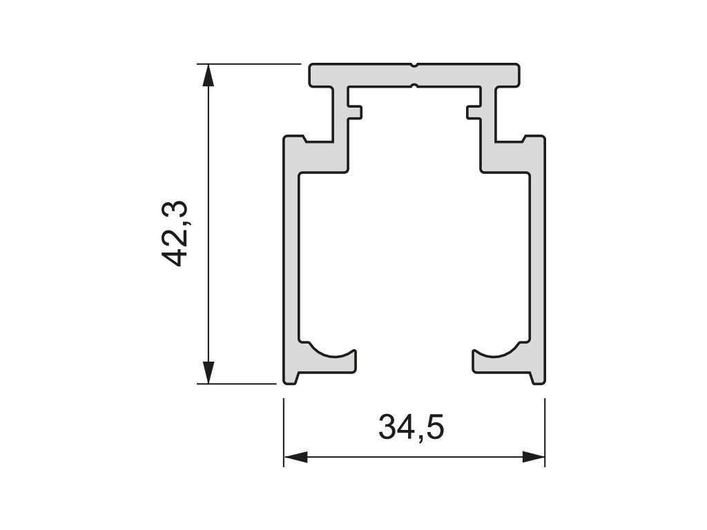 Upper rail railway system for hanging sliding doors. The assembly is done by pre-drilling in the guide and, thanks to additional supports, it can be attached both upper and laterally. In addition, its shape allows easy car mechanism and ensures great final stability. The measures of the section of the lane are 42.3 mm high and 34.5 mm wide, while the length is 2 m. This piece is made of aluminum with a matt anodized finish that guarantees durability and resistance to corrosion. The packaging contains 8 units of the product.