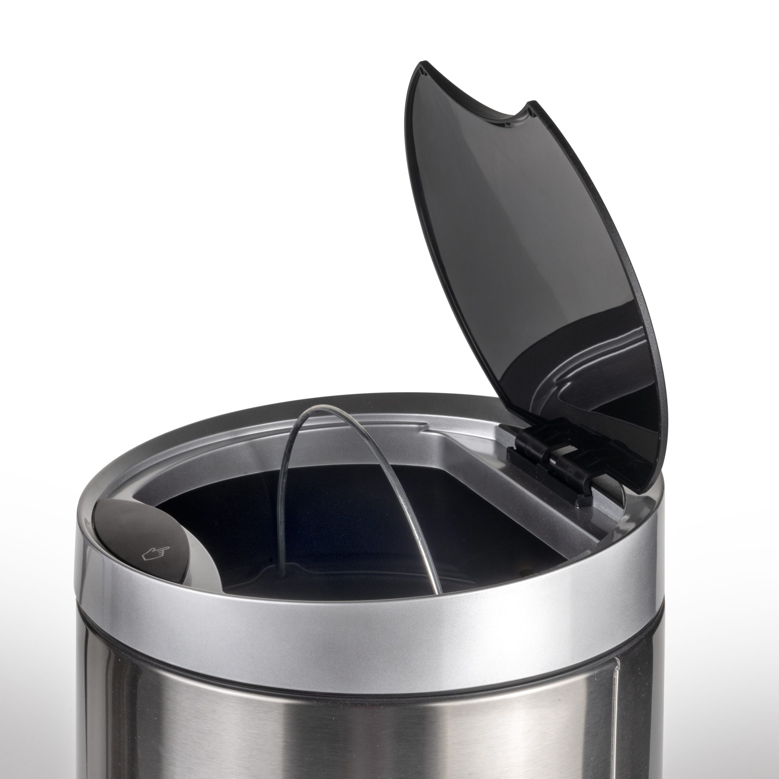 Recycle circular trash container with a lid controlled by a motion detector sensor located in the lid, which makes its daily use easier. The container has a capacity of 20 liters and it also includes a removable bucket to facilitate the removal of waste. Thanks to its design made of stainless steel, it can be used in any area of the home, in the kitchen, in the bathroom and also in the office.