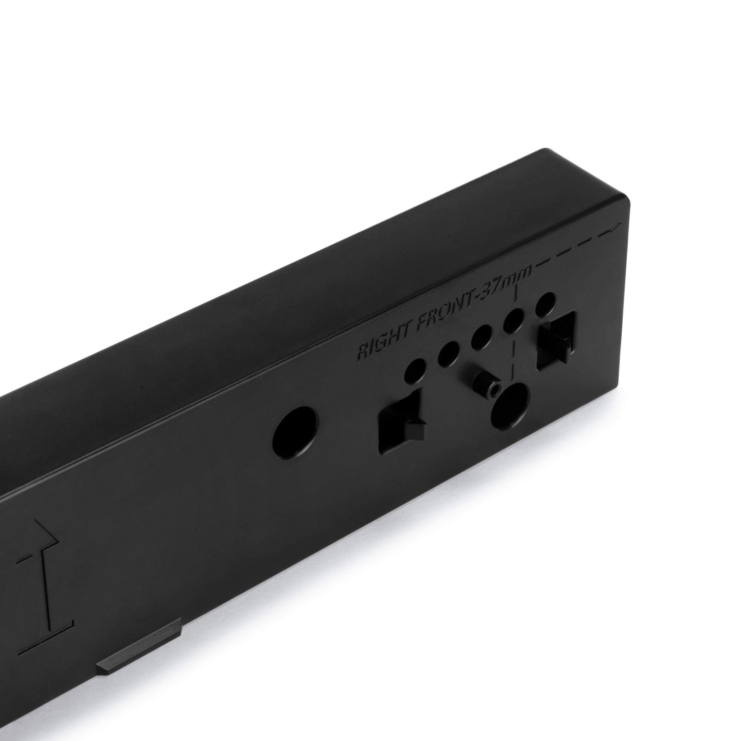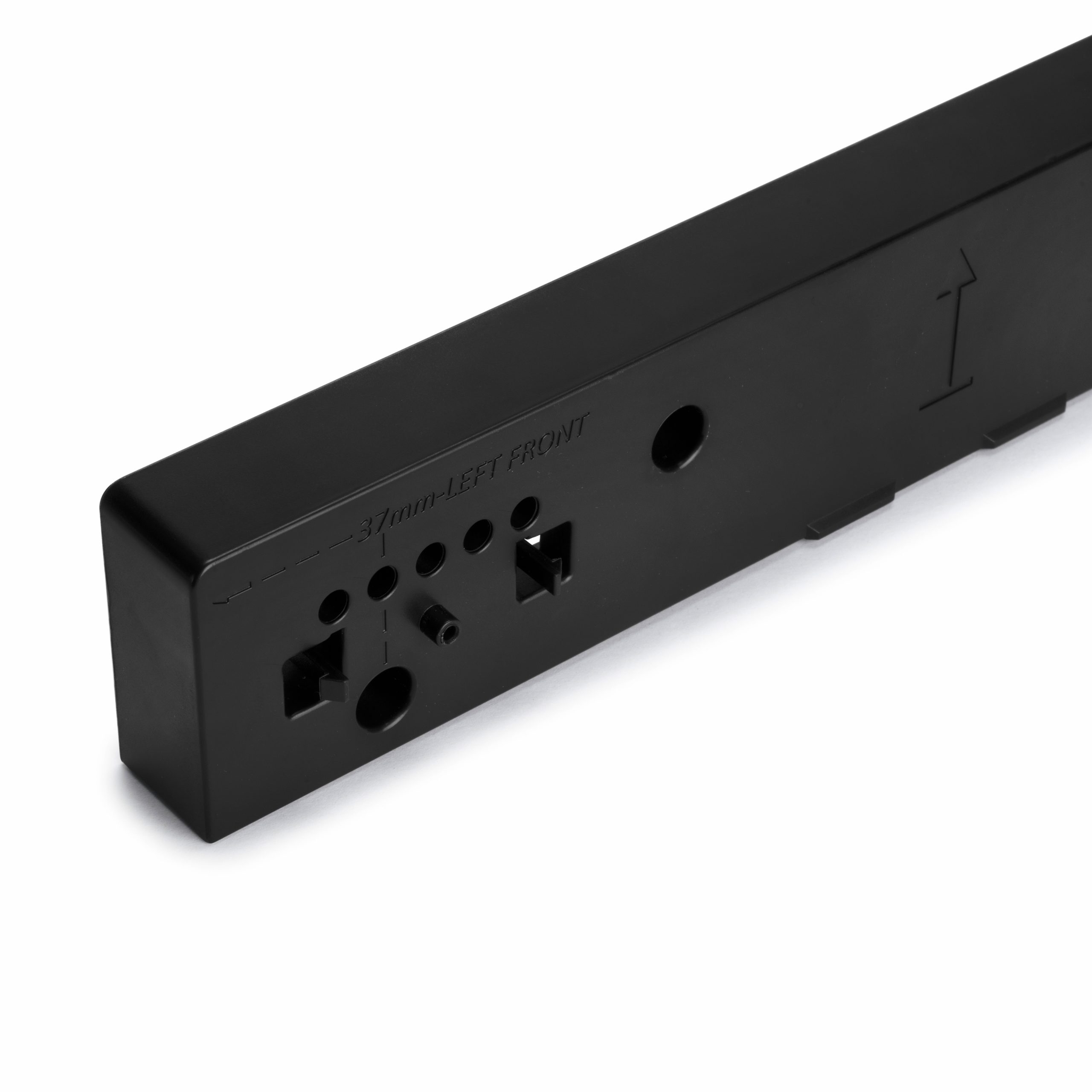 You can first install the spacer to the cabinet with Ø4x25mm screws and then attach the slide with EURO Ø6,2x13mm screws. Or you can pre-fasten the spacer to the rail with clips included, and then attach the assembly to the cabinet with Ø4x40mm screws. Four side spacers and 16 EURO screws Ø6,2x13mm are supplied. It is made of plastic with stone gray or black finish, depending on the selected model.
