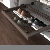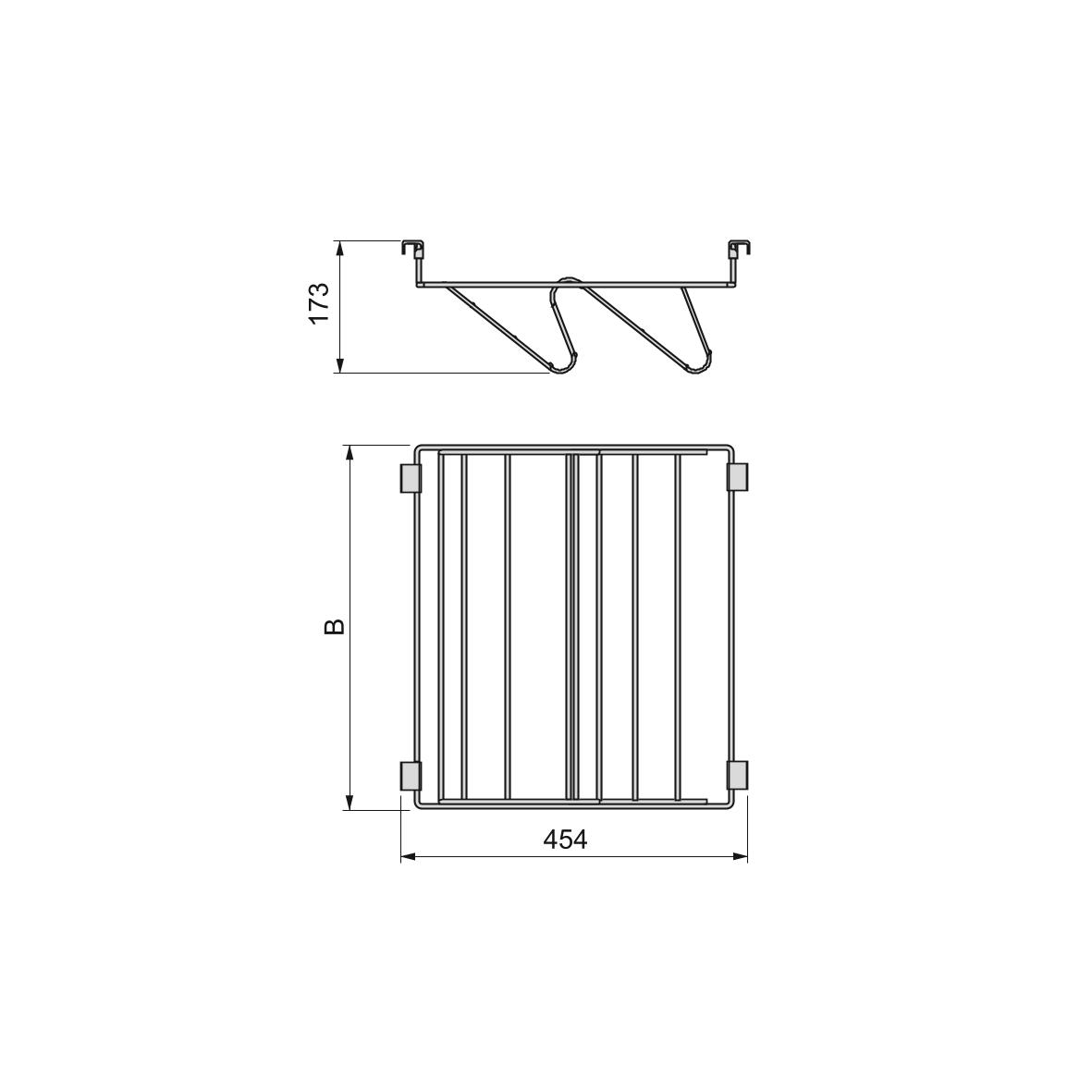Shoe storage drawer made entirely of stainless steel in the form of welded wire, for greater strength and resistance. It has a mocha-painted finish to match the rest of the closet. You have 3 options to choose from regarding its front and rear dimensions: 475mm, 675mm, and 775mm. While it has a height of 173 mm and its sides are 454 mm each. Its packaging brings 2 units ready for assembly. In its 4 corners, it has a tab to hold on to whatever support there is. Its design includes two partitions to accommodate as many shoes as possible.