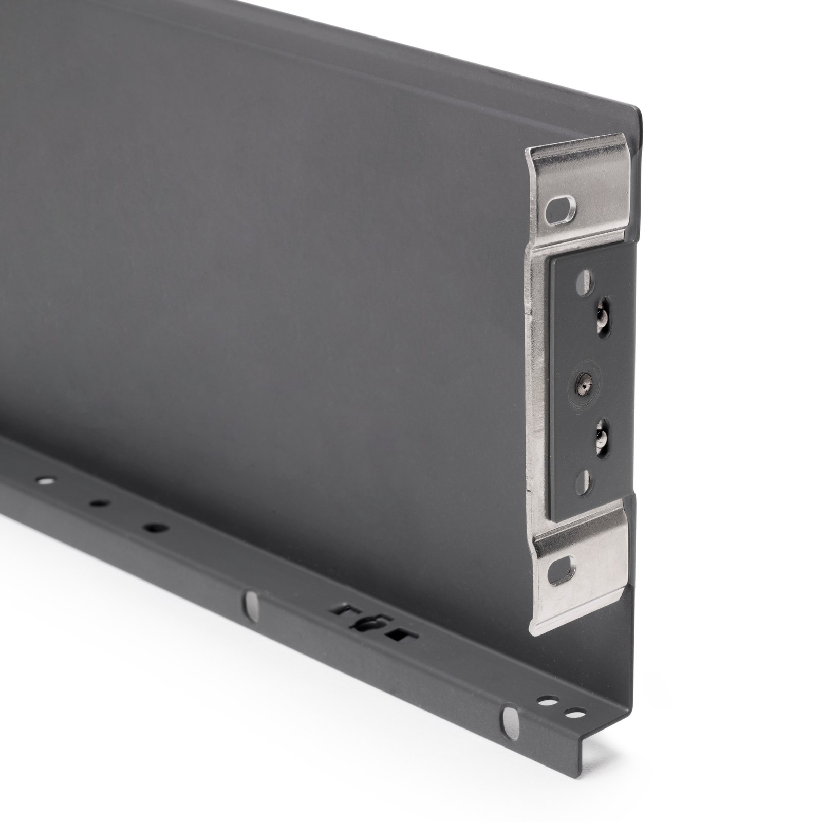 These 122 mm high drawer sides have an elegant design, which offers a large interior width. The drawer front can be adjusted ±2mm vertically by means of an eccentric, as well as ±1.5mm horizontally. In addition, the runners themselves can be adjusted in height. The pairs include: two side panels and a set of front covers. They are made of Steel and painted in Anthracite grey or White.