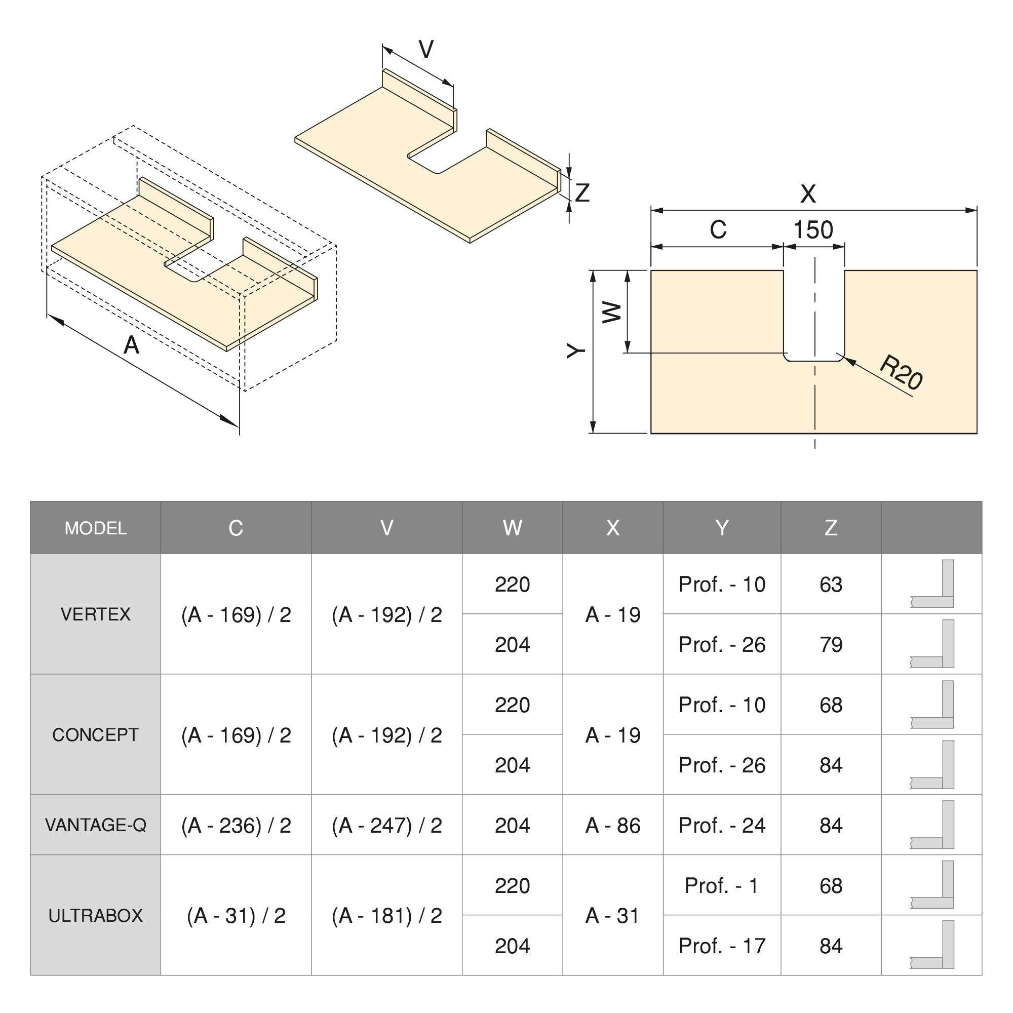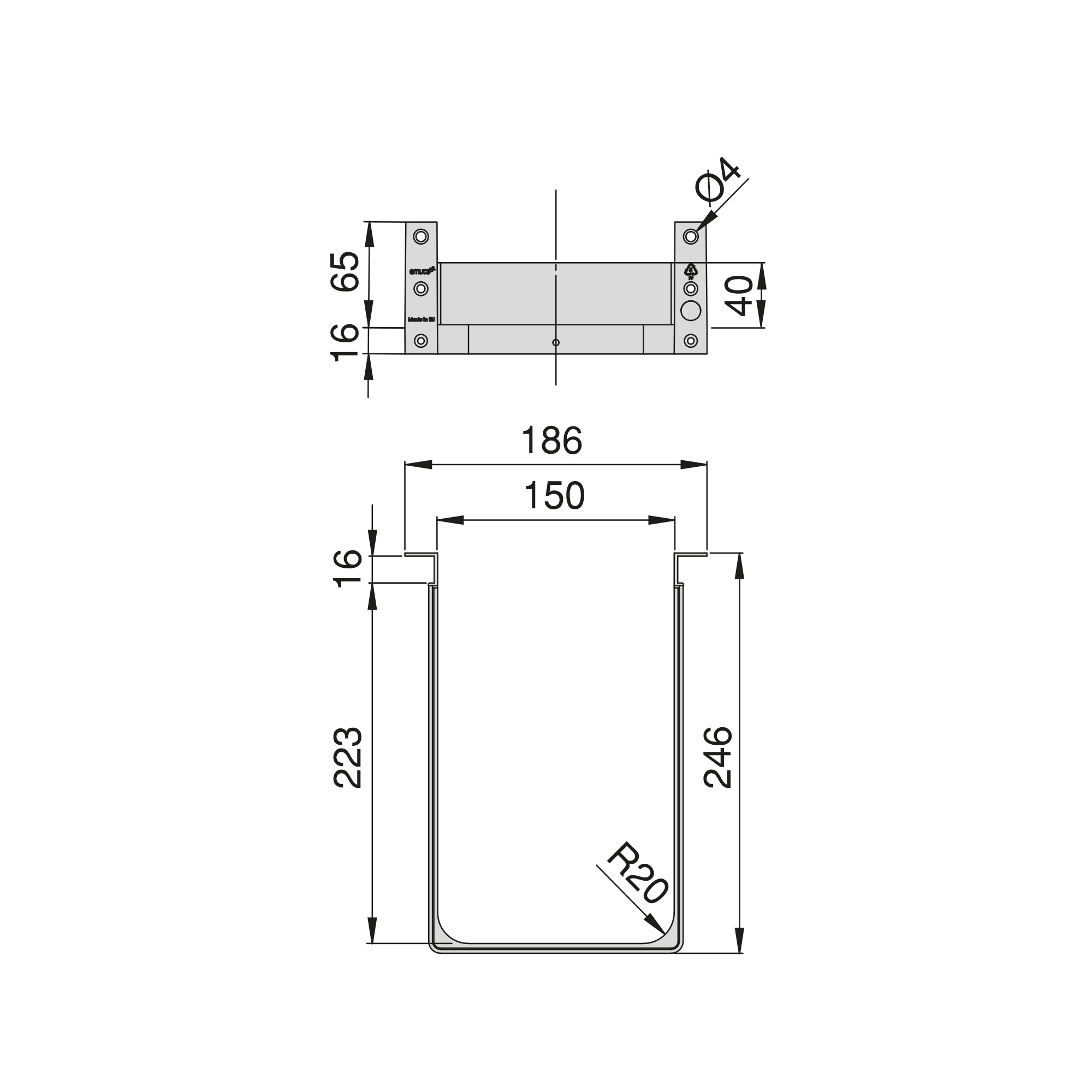 • It is suitable for any drawer back height with a thickness of 16mm and can be mounted on drawers with a minimum depth of 250mm.