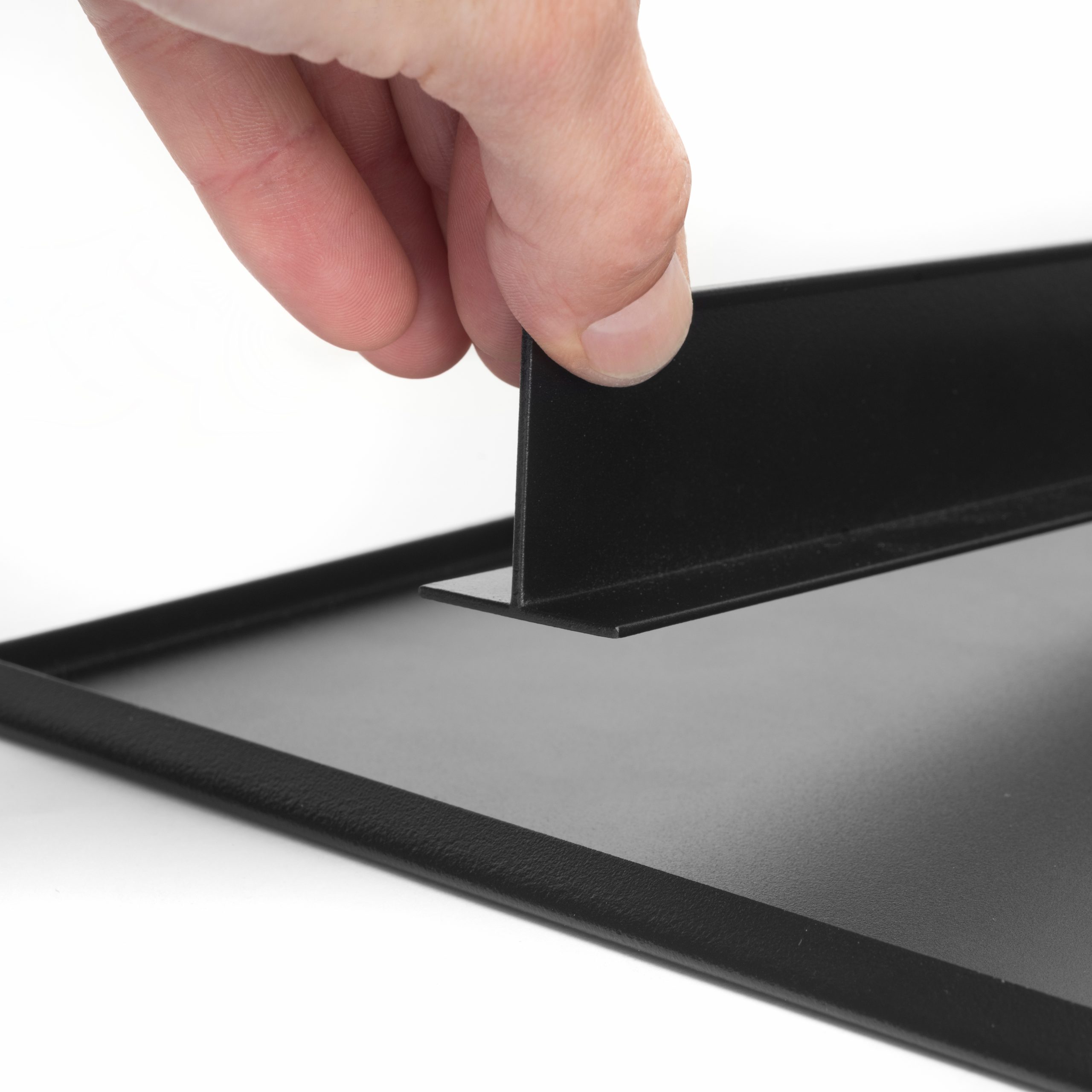 This tray has steel dividers that are attached to the tray thanks to the magnetic strip on its base. In this way, the dividers can be arranged vertically or horizontally to generate different compositions depending on the use of the tray, for example as a shoe rack. Supplied with 2 trays and 4 dividers. It is made of steel with textured painted finish in stone gray or black, depending on the selected model.